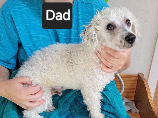 Theo is a male Poodle. Carefully selected as a great representative of his breed, Heather decided to make him part of their program. Heather has passed Good Dog’s screening process, which involved a review of their breeding practices, environment, and the mental and physical health of their dogs.