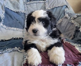 Our puppies are black and white. Colors will vary depending on the parent dogs.