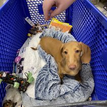 Goldie is a female Dachshund. Carefully selected as a great representative of her breed, Donna decided to make her part of their program. Donna has passed Good Dog’s screening process, which involved a review of their breeding practices, environment, and the mental and physical health of their dogs.