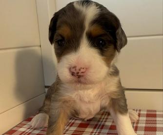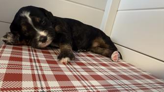 Our Dachshund puppies include cream, chocolate and cream, black and cream, and dapple. Bernedoodle puppies include brown, tri-color, blue merle, and merle. Colors will vary depending on the parent dogs.