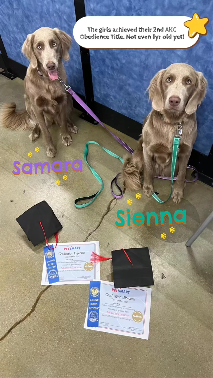 Sienna & Samara have graduated from advanced obedience class and achieved their 2nd AKC title in obedience. CGC (Canine Good Citizen