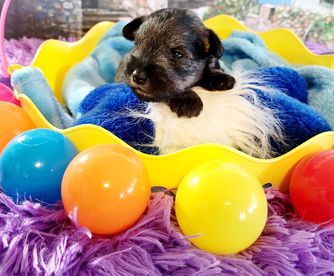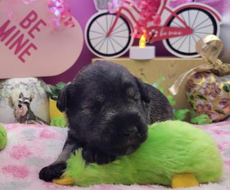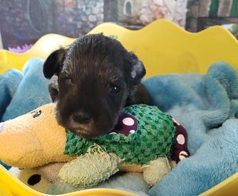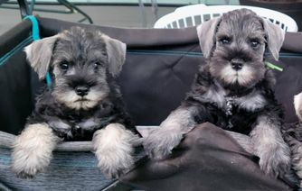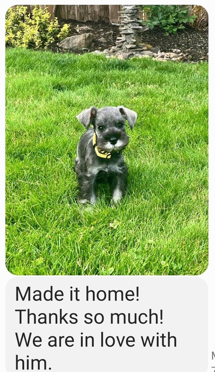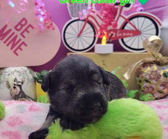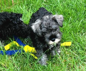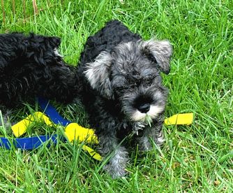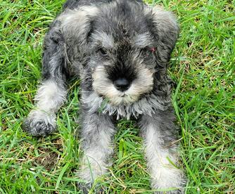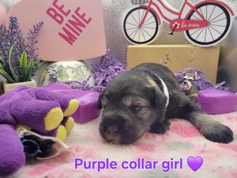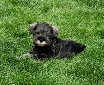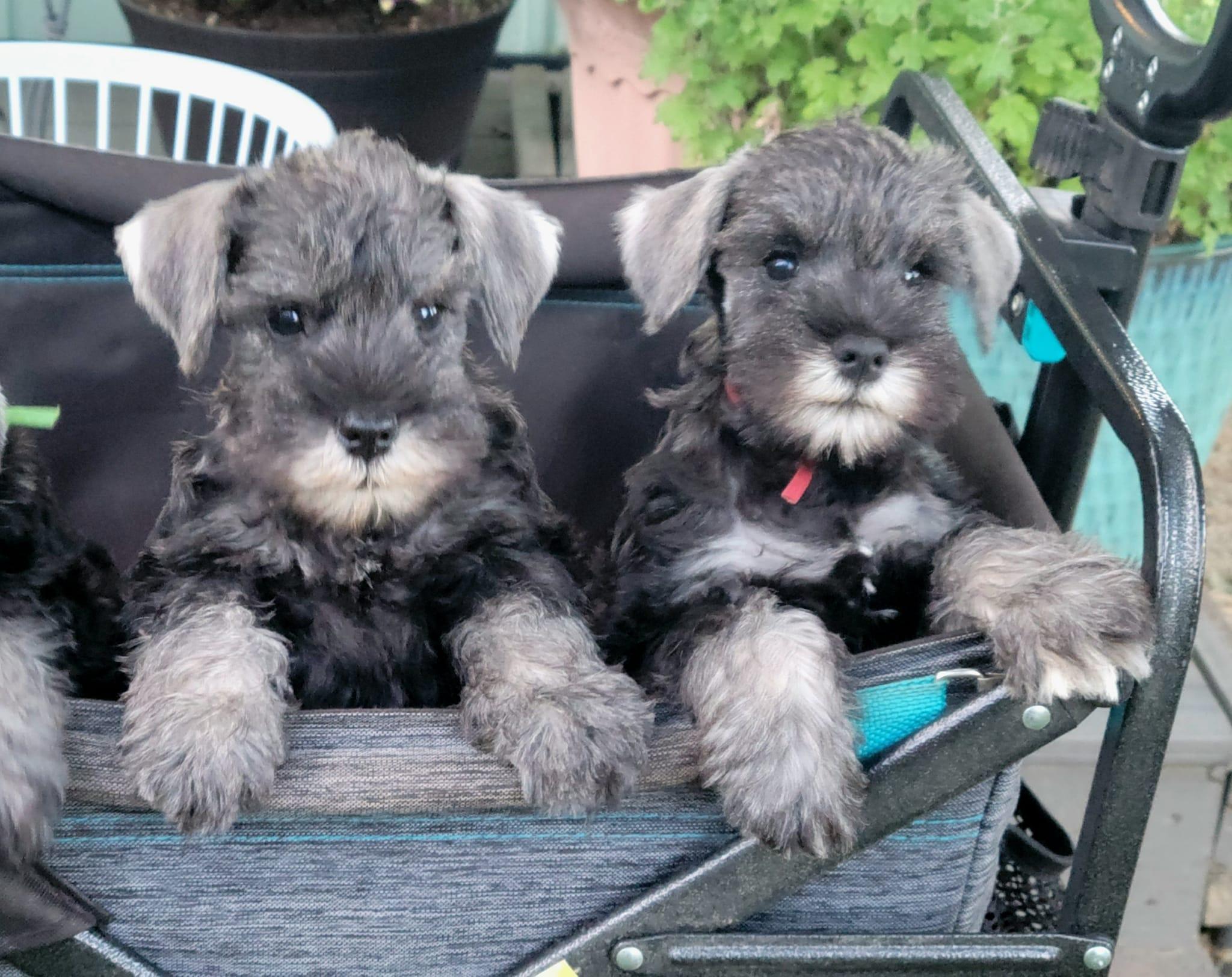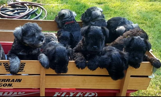 Our puppies include salt and pepper, black and silver, and black. Colors will vary depending on the parent dogs.
