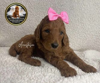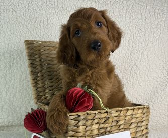 Our Poodle puppies are red. Irish Doodle puppies are red. Colors will vary depending on the parent dogs.