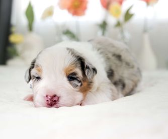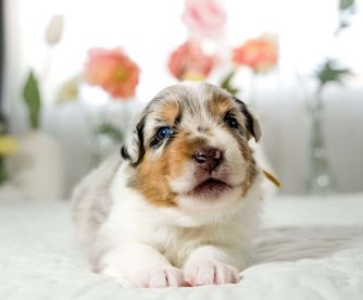 Our puppies include blue merle and black tri-color. Colors will vary depending on the parent dogs.