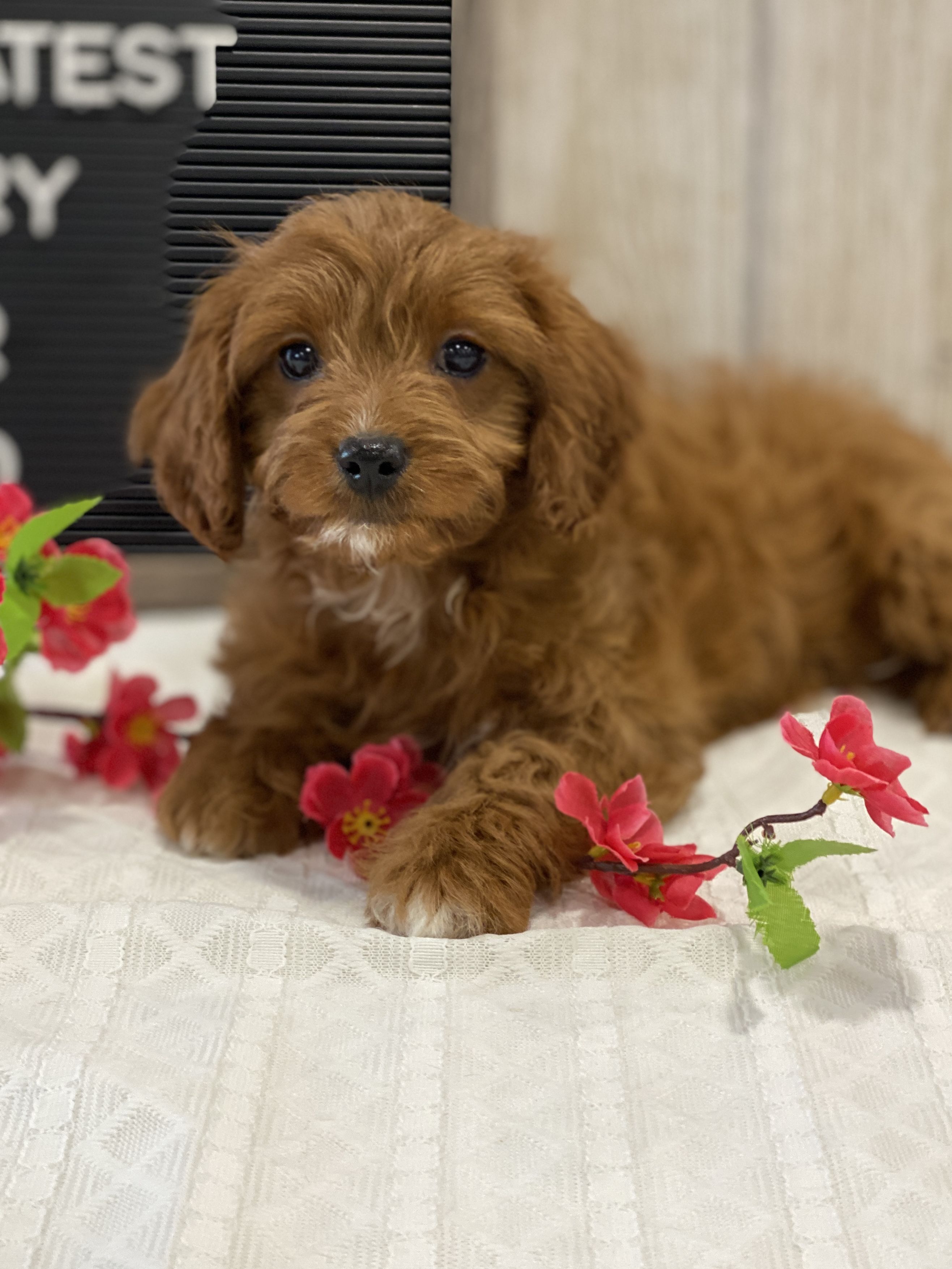 Our Cavapoo puppies are red. Poodle puppies are red. Colors will vary depending on the parent dogs.