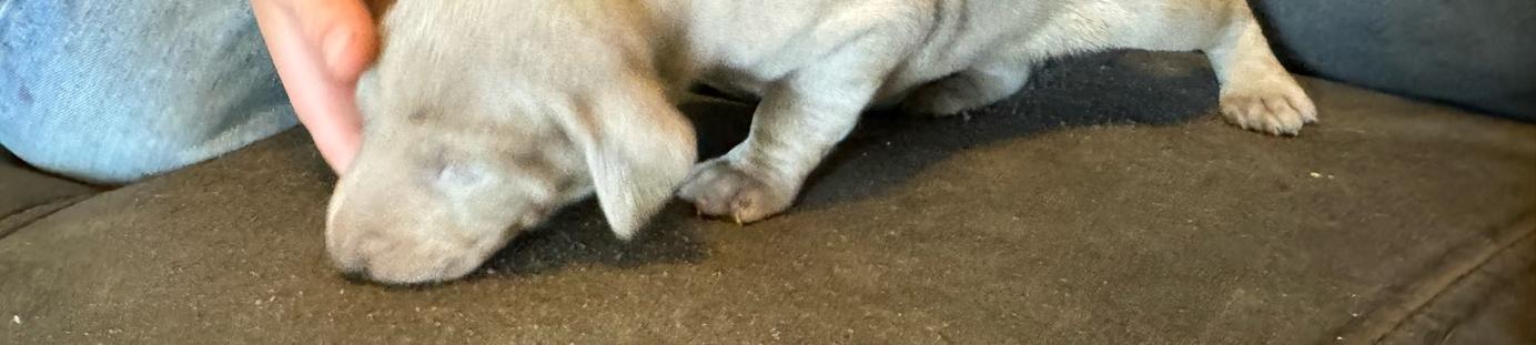 I purchased my first weim in 2010 and absolutely fell in love with the breed. In 2014 we began our breeding program to increase breed awareness and provide high quality, well socialized pups for other families to love. in 2022, we added the long-haired weim to our farm and are absolutely in love with them as well.