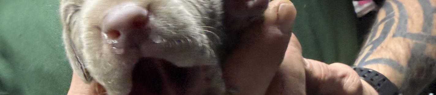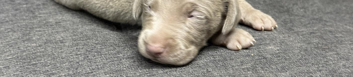Our Weimaraner puppies include silver gray, gray, and blue. Colors will vary depending on the parent dogs.