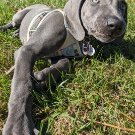 Ace is a male Weimaraner. Carefully selected as a great representative of his breed, Lucy decided to make him part of their program. Lucy has passed Good Dog’s screening process, which involved a review of their breeding practices, environment, and the mental and physical health of their dogs.