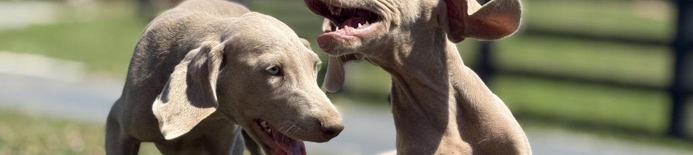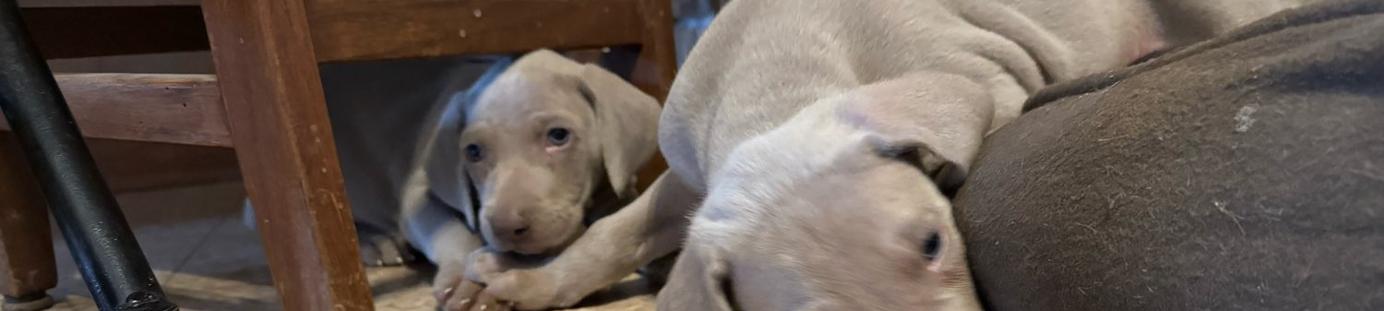Our Weimaraner puppies include smooth and long coat varieties. Coat types may vary depending on the parent dogs.