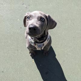 Ava is a female Weimaraner. Carefully selected as a great representative of her breed, Lucy decided to make her part of their program. Lucy has passed Good Dog’s screening process, which involved a review of their breeding practices, environment, and the mental and physical health of their dogs.