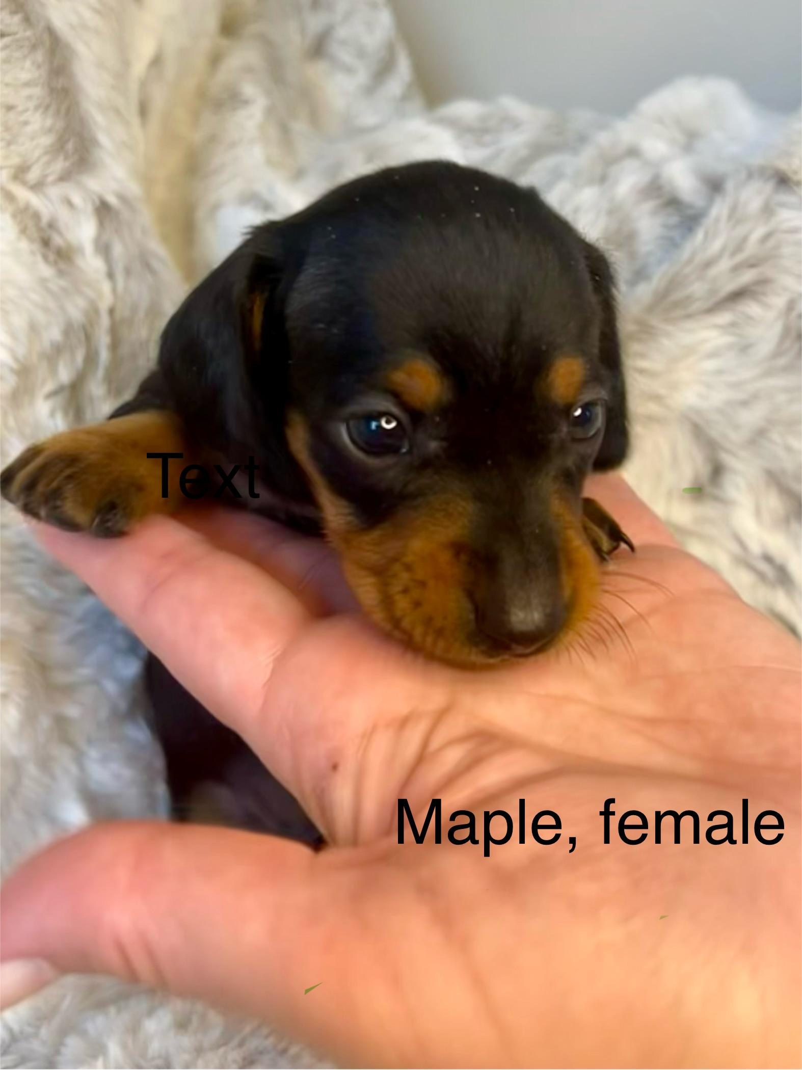 Dixie is a female Dachshund. Carefully selected as a great representative of her breed, Danielle decided to make her part of their program. Danielle has passed Good Dog’s screening process, which involved a review of their breeding practices, environment, and the mental and physical health of their dogs.