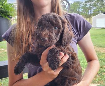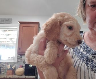 Mattie is a female Labradoodle. Carefully selected as a great representative of her breed, Carleen decided to make her part of their program. Carleen has passed Good Dog’s screening process, which involved a review of their breeding practices, environment, and the mental and physical health of their dogs.