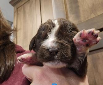 Our puppies include white and brown, white and black, black, and brown. Colors will vary depending on the parent dogs.