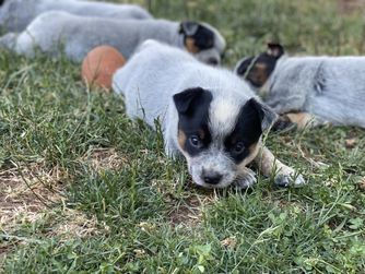 I'm the breeder behind Heirloom Ranch located in Cottage Grove, OR. At Heirloom Ranch, we strive to produce dogs that are versatile enough to be excellent family companions, compete in dog sports, or work a long day on the farm. All of our dogs are AKC registered. All of our dogs are genetic health tested. All of our breeding dogs are BAER tested and have full hearing. All of our breeding dogs have CAER eye exam certifications. Some of our dogs have OFA Hip and Elbow certificates. We are very picky on the temperament and trainability of our breeding dogs, we will only breed dogs with flawless temperaments and willing attitudes. We aim for stocky, thick-boned, full-sized Cattle Dogs. Our adult dogs are, first and foremost, part of our family and they also work part-time on our farm. Our puppies are very well socialized and raised with children.