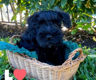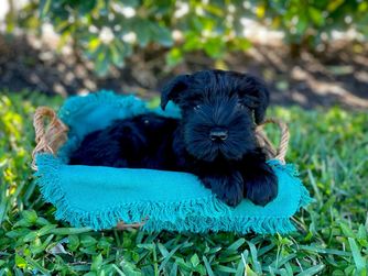 Our puppies include black, black and silver, and salt and pepper. Colors will vary depending on the parent dogs.