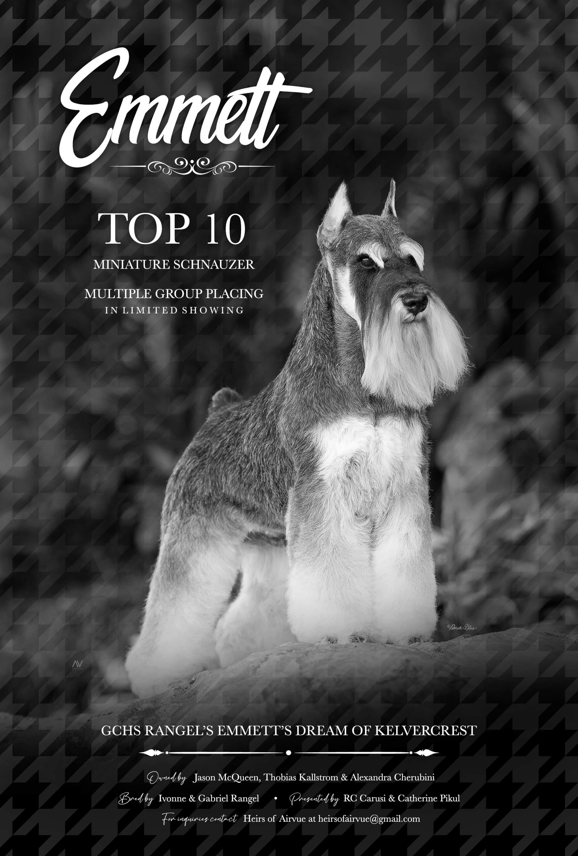 Heirs Of Airvue reports to performing the health tests below on their breeding dogs. Ask your breeder about the tests performed on the parents of your litter. Learn more about health testing for Miniature Schnauzers.