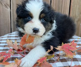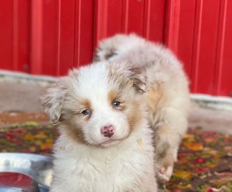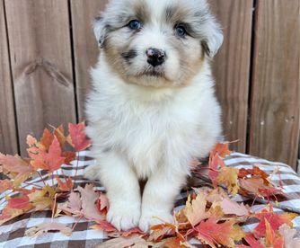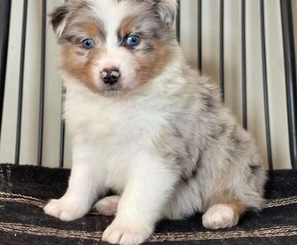 Our puppies include black, red merle, blue merle, and red. Colors will vary depending on the parent dogs.