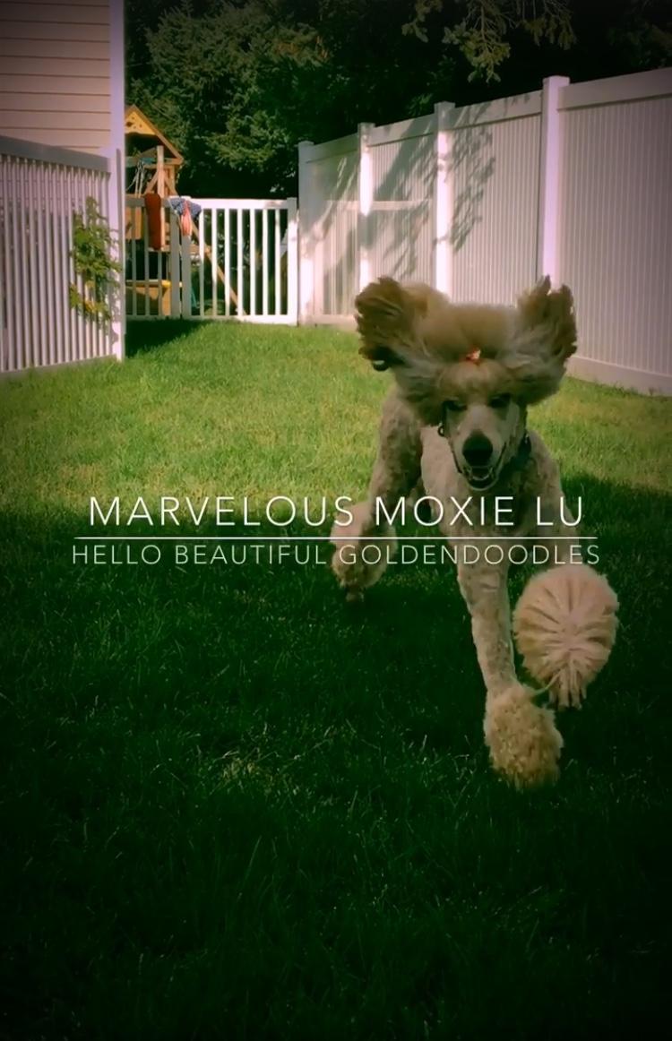 Maizey is our F1b English Goldendoodle. She is Sweet and docile and also very intelligent and athletic. Maizey loves her people and everyone has to meet her. Maizey is an outdoor enthusiast and loves a good long walk, baseball game or boat ride! She loves children and has the perfect temperament for a family dog.