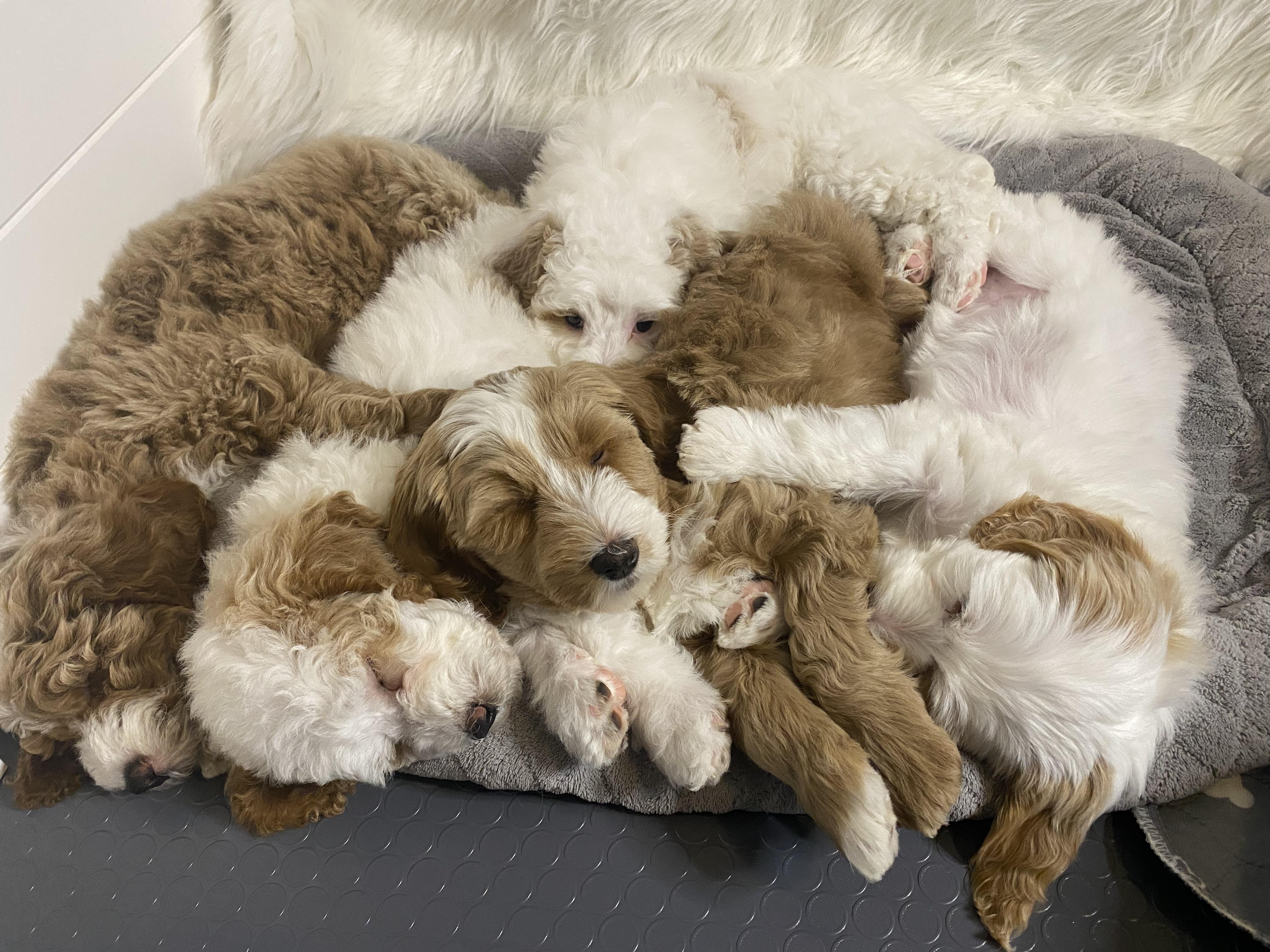 As a child, we had working farm dogs and occasionally a litter of puppies. I was always in the whelping box loving on the puppies and loved everything about raising puppies. Now, I have put in years of research and have had the guidance of some amazing breeders and veterinarians.