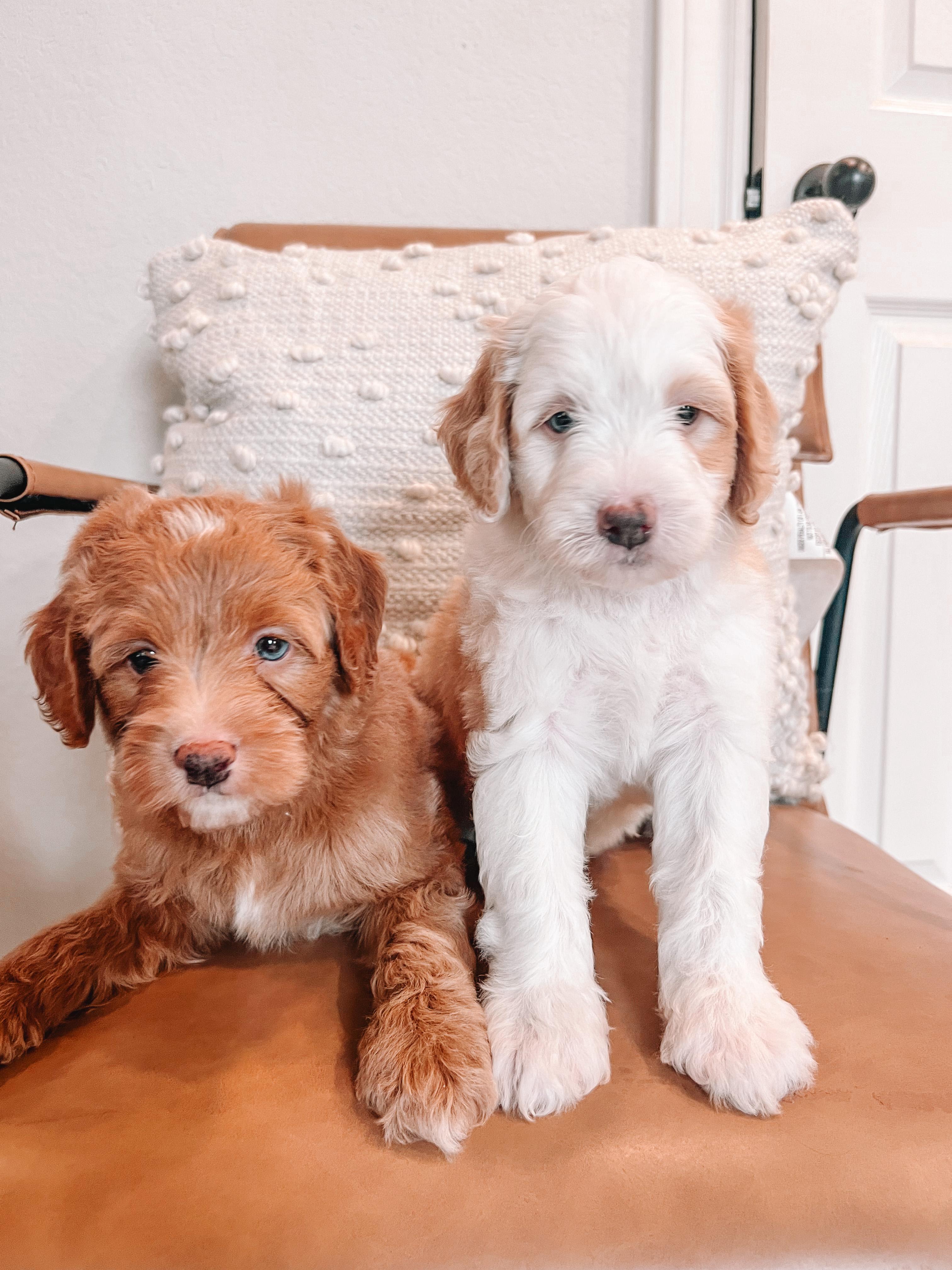 Our Bernedoodle puppies include tiny and mini sizes. Goldendoodle puppies include petite and miniature sizes. Sizes will vary depending on the parent dogs.
