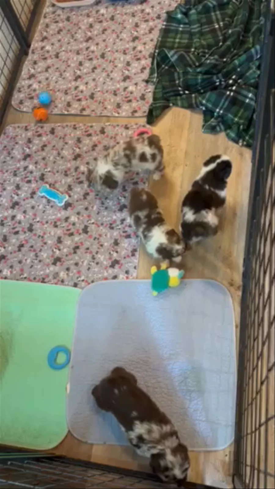 The pups are doing well! Each growing at a steady pace and discovering new toys and play areas. We love spending time with them🐾