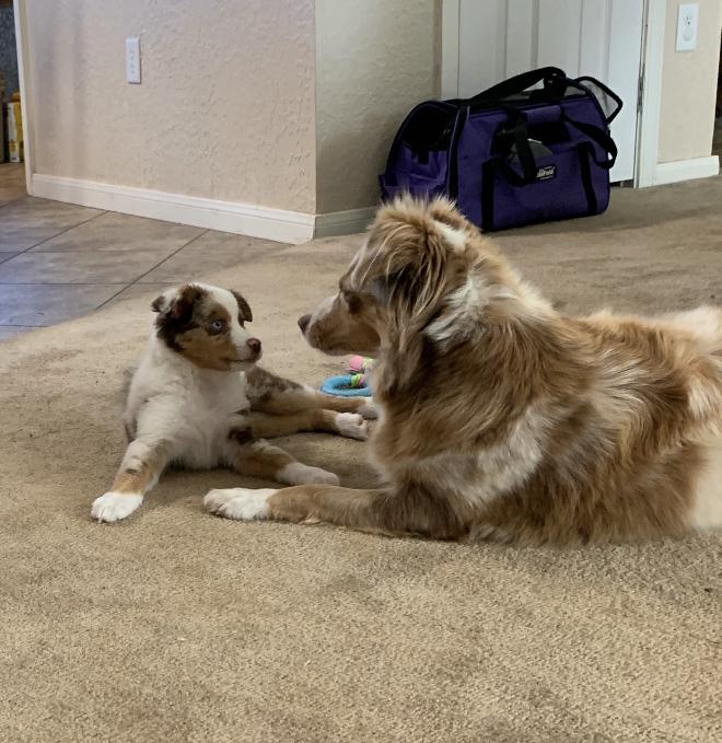 Sarah was wonderful to work with from the very beginning. She made sure I'm familiar with the breed so there wasn't any surprises and she answered all my questions. Halo isn't my first Aussie and she is already a fantastic addition to my little doggy family. She's smart and loyal already. I appreciate how socialized she was when I got her. She's just an amazing pup. The Helms were also very flexible about meeting me and pick up. I would highly recommend Helm Farms Aussies. You won't be disappointed.