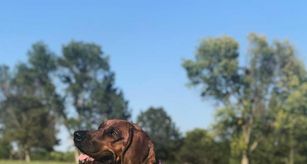 INDY is a female Redbone Coonhound about 4 years old. Carefully selected as a great representative of her breed, Myranda decided to make her part of their program. Myranda has passed Good Dog’s screening process, which involved a review of their breeding practices, environment, and the mental and physical health of their dogs.