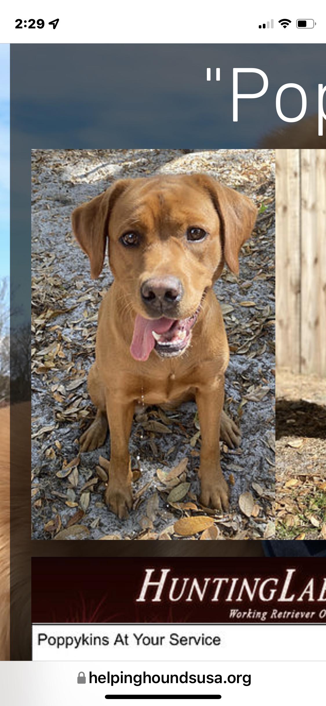 Poppy is a female Labrador Retriever. Carefully selected as a great representative of her breed, Demetra decided to make her part of their program. Demetra has passed Good Dog’s screening process, which involved a review of their breeding practices, environment, and the mental and physical health of their dogs.