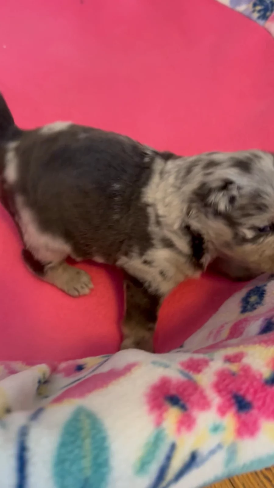 Fleury has the best temperament and is a sweetheart. She loves meeting new people and is so good with other dogs and cats. She is Continental Kennel Club registered and was born right here from Zoe x Sawyer. She is Health Tested including OFA and Embark.