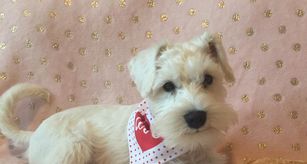 Finnigan is a male Miniature Schnauzer. Carefully selected as a great representative of his breed, Kathy decided to make him part of their program. Kathy has passed Good Dog’s screening process, which involved a review of their breeding practices, environment, and the mental and physical health of their dogs.