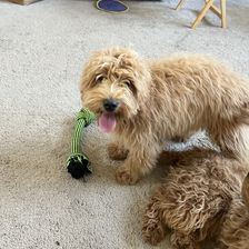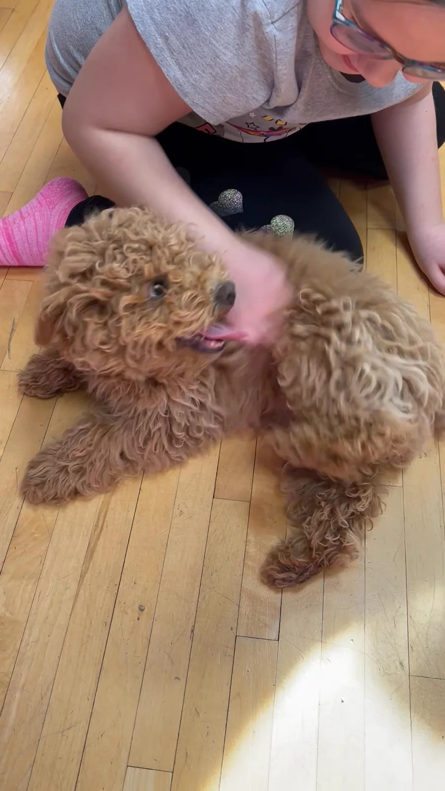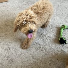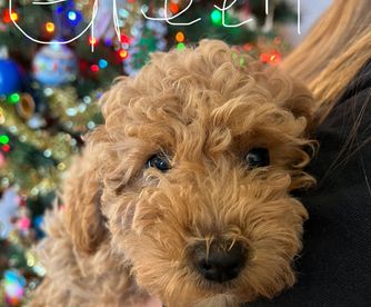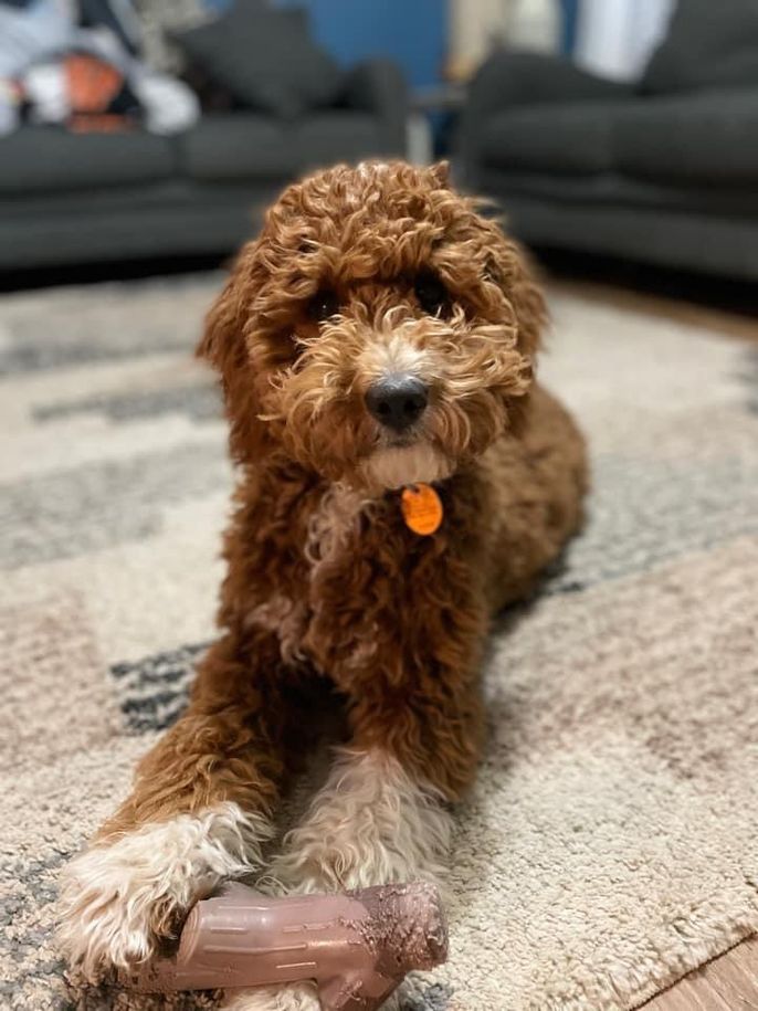Honey is a F1 mini golden doodle and is the best momma. She is so attentive to her puppies. Honey loves to find a good spot under a chair to chew on a bone. She is a loyal companion and extremely smart.