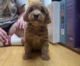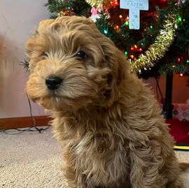 Charlie is Toy poodle with apricot coloring. He is a loyal companion and loves to snuggle. Charlie is available for stud services and is proven.
