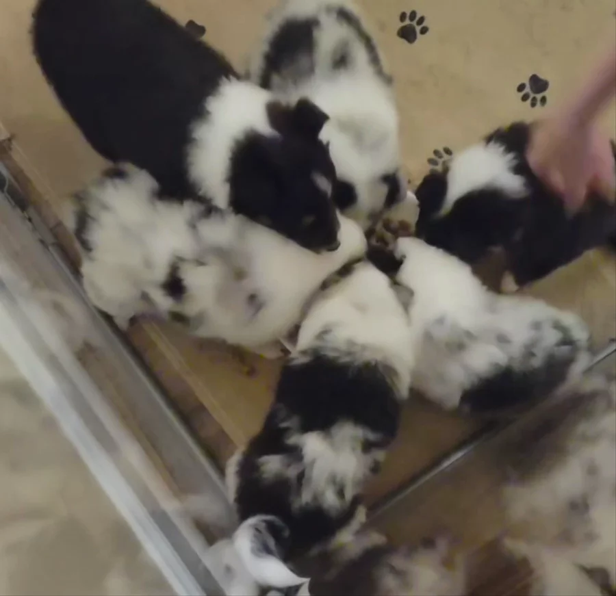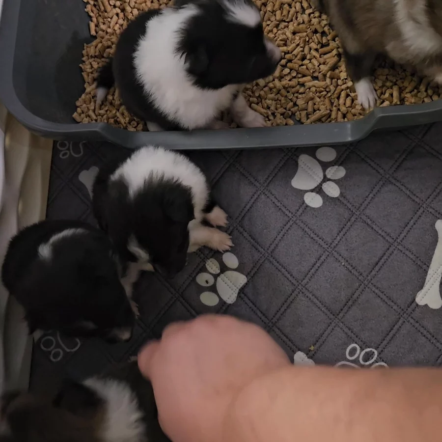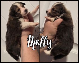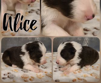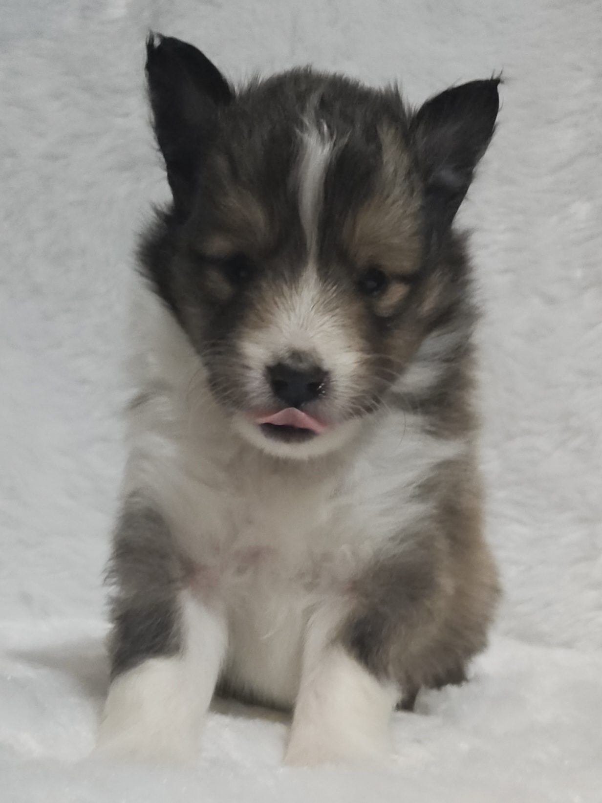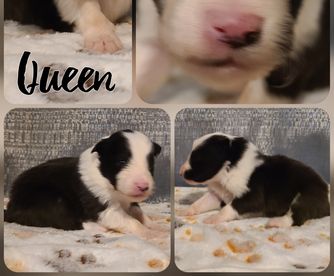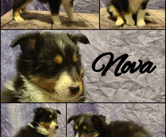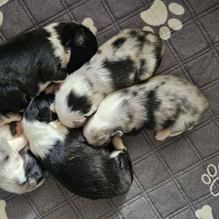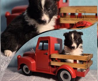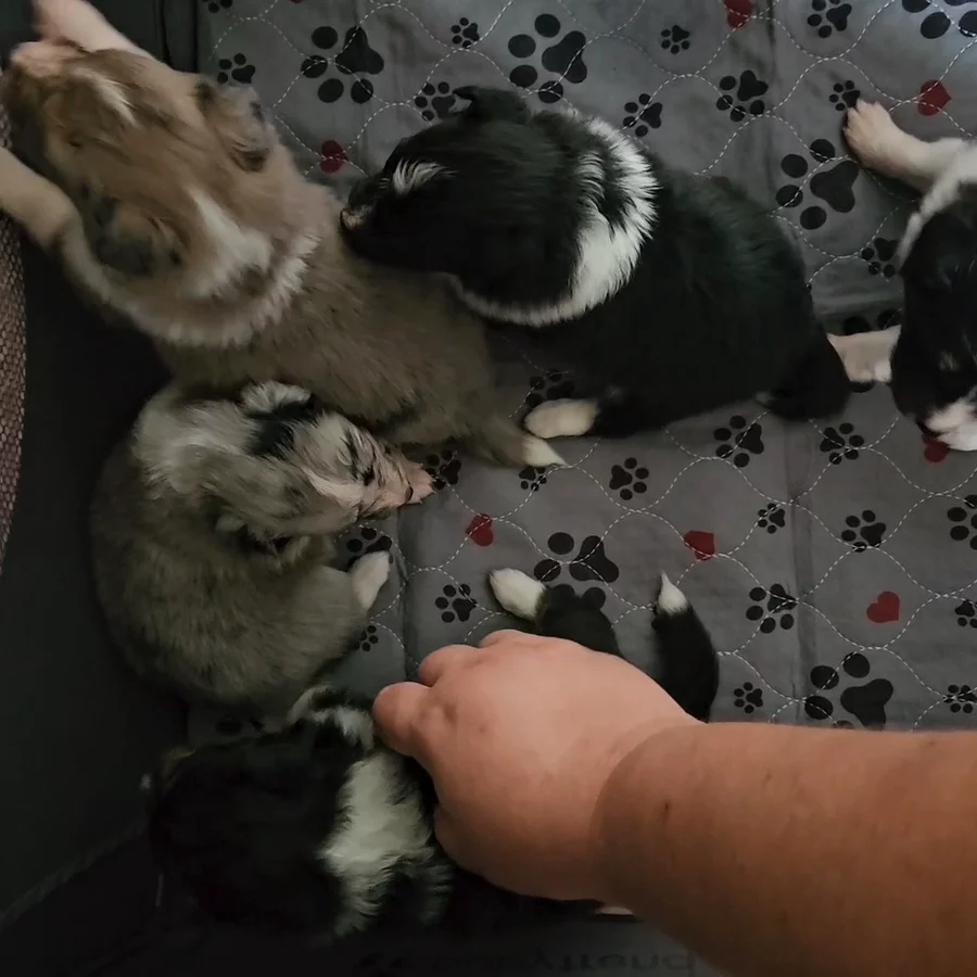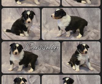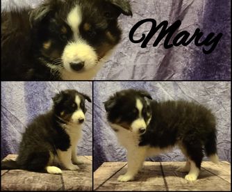 Our puppies include sable and white, sable merle and white, blue merle and white, blue merle white and tan, black white and tan, and black and white. Colors will vary depending on the parent dogs.