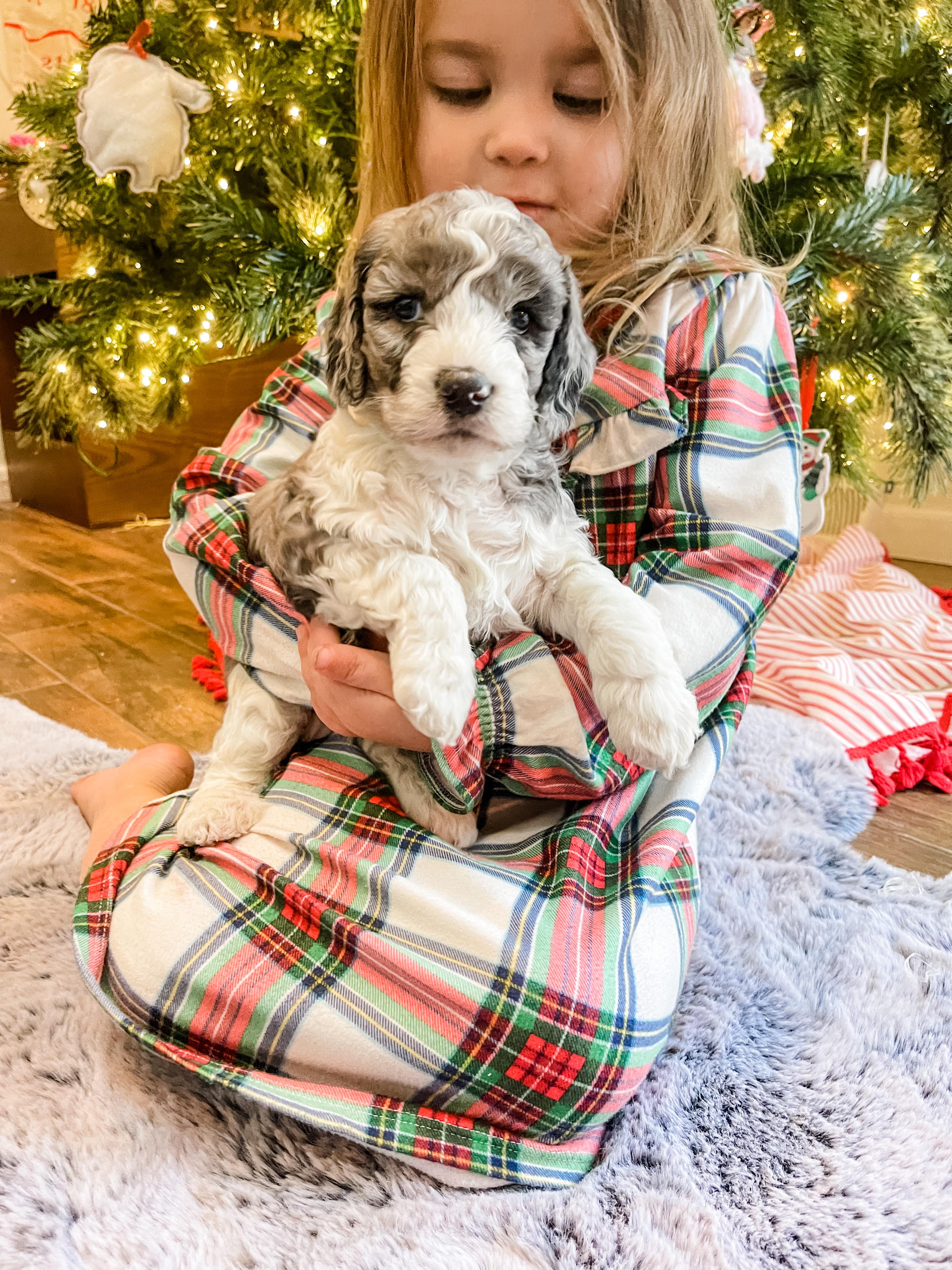 We breed only the highest standards and keep everything in home with children present through the entire time. Our puppies are socialized from day one