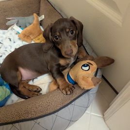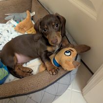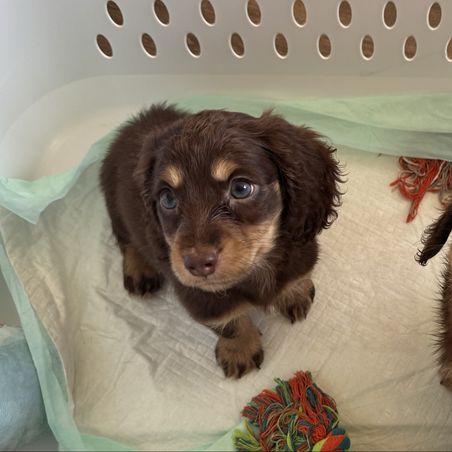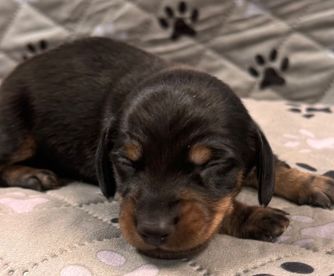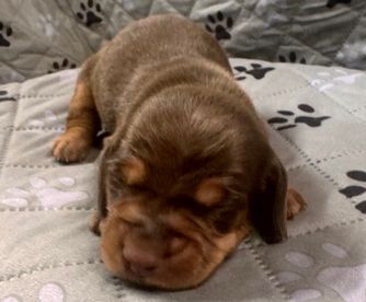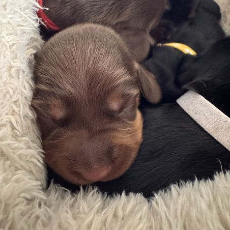 We had an absolutely fantastic experience with Roy and Shana from start to finish. They were incredibly accommodating and met us halfway, which made the pickup process smooth and stress-free. Their communication was excellent — they shared great information about the puppy’s care, background and made sure we had all of his records. It was clear that they truly care about their animals and take pride in raising healthy, well-socialized puppies. Our little one came to us happy, clean, and full of personality. We felt confident and prepared thanks to all the guidance they provided. We have another mini dachshund at home at they love each other! We couldn’t be more grateful for the positive experience, and we highly recommend them to anyone looking for a responsible, trustworthy place to find their new family member!