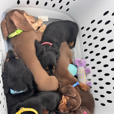 What makes our program special is the love & care we give each puppy—from birth to going home. We raise healthy, social, quality Dachshunds who are confident & ready to join your family. Each pup is part of our home, raised with heart. We also offer safe, reliable ground transport to make bringing your puppy home easy. Dachshunds are loyal, loving, & devoted—and we’re proud to share that.