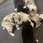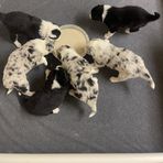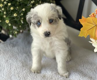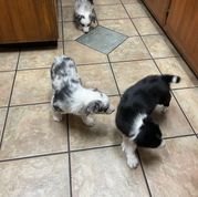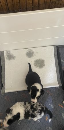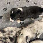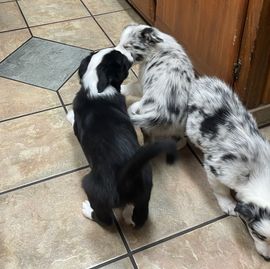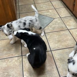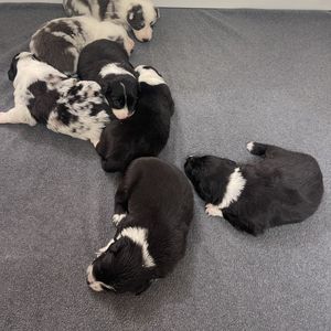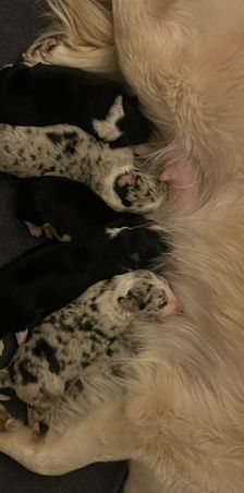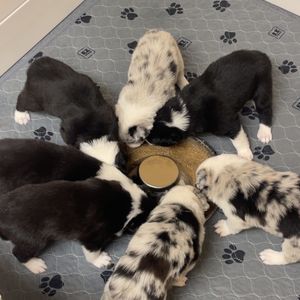 Our puppies include tri-color, gold merle, lilac merle, slate merle, black and white, blue merle, red merle, black, blue, gold, lilac, red, white and blue, white and blue merle, white and red, white and red merle, white ticked, seal, slate, and white and gold. Colors will vary depending on the parent dogs.