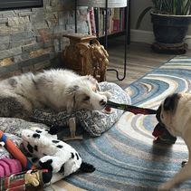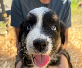 Our dogs are family! By day, they are helpful companions that move sheep and play with children. At night, they enjoy cuddling with their humans and relaxing from their full day! Our pups are equally cared for and we give them as much stimulation and exposure as possible in order to help shape a well-rounded dog.