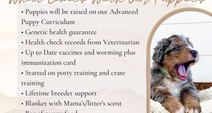 We currently breed Goldendoodles, Mini-Goldendoodles, Bernedoodles, Mini Bernedoodles & Poodles. We breed top quality puppies, raised in our home, among our kids for very special families. Our upmost goal is always the puppy’s health, the puppy’s parents’ health, & the long-term health of the breed. We are passionate about raising quality dogs, and constantly researching to stay up to date on the best practices.