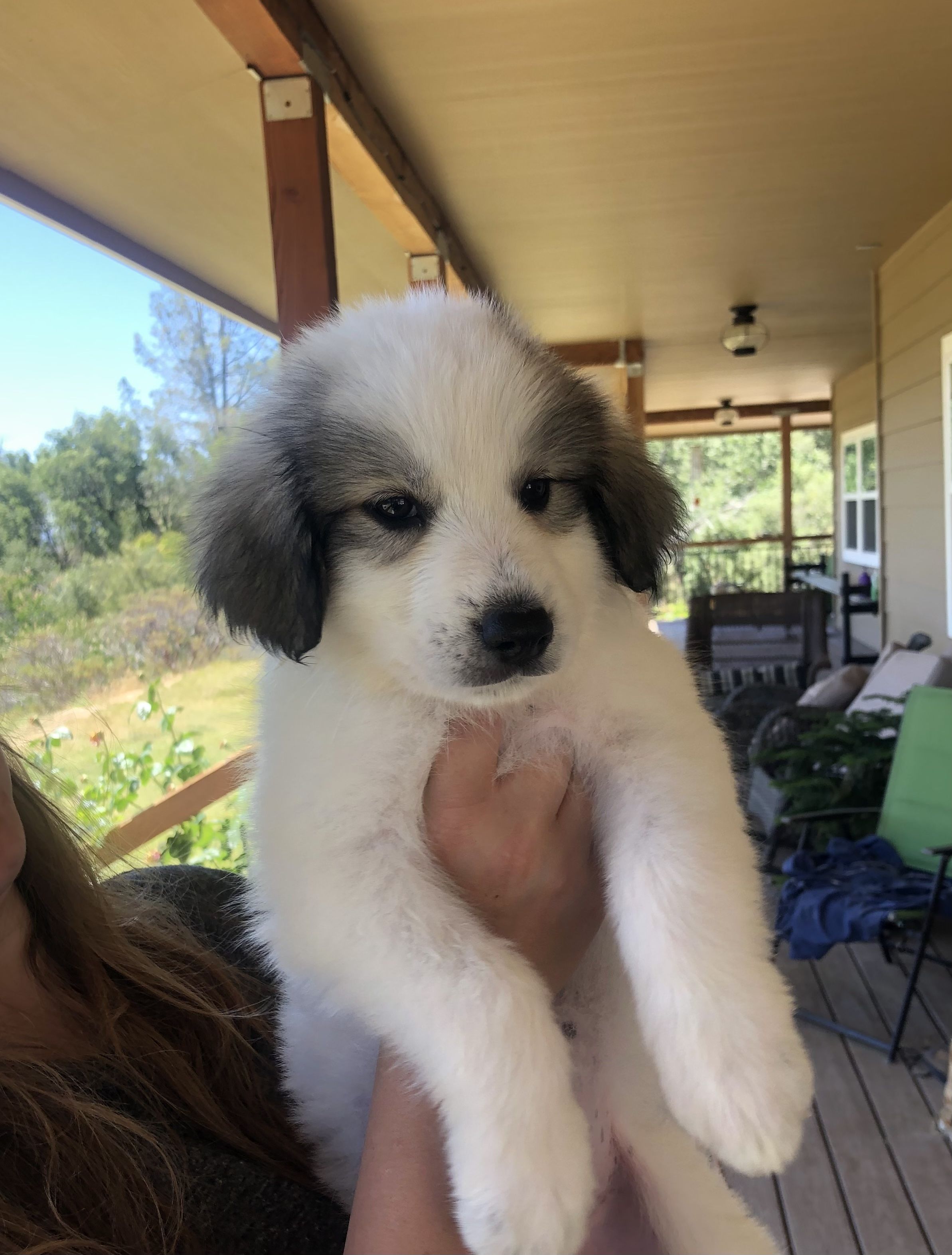 Years ago we had our lovely Lily, who lived to be 13! So many of our friends up here wanted guardians like her and they were hard to find. We were also moving to 40 acres in North Fork with only one Pyr to guard. She wasn’t our first Pyr, but our only at the time. I’d bred collies many years before. So we acquired our Patrick and kept Whisper from their litter. We’ve had 5 Pyrs at one time here and that’s a good number.