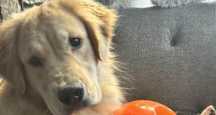 Charlie is a calm, collected, laid back Golden who wants nothing more than to make her people happy! She is an AKC Grand Champion and is currently in training to be a Therapy dog. Even though she's calm, she still has plenty of energy! She loves going on hikes and walks, and loves chasing a ball or frisbee! That said, her absolute favorite spot is curled up on the couch next to us!