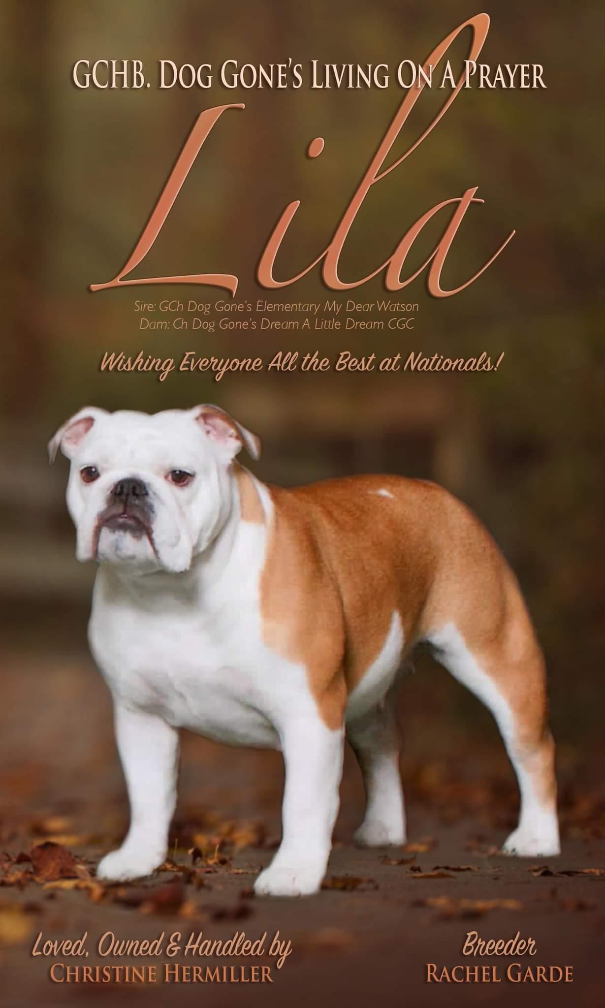 LILA is a male Bulldog. Carefully selected as a great representative of his breed, Chris decided to make him part of their program. Chris has passed Good Dog’s screening process, which involved a review of their breeding practices, environment, and the mental and physical health of their dogs.