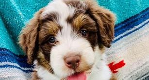 Our Goldendoodle puppies include apricot, red, chocolate, merle, and parti. Aussiedoodle puppies include blue merle, red merle, black and white, and black tri-color. Colors will vary depending on the parent dogs.