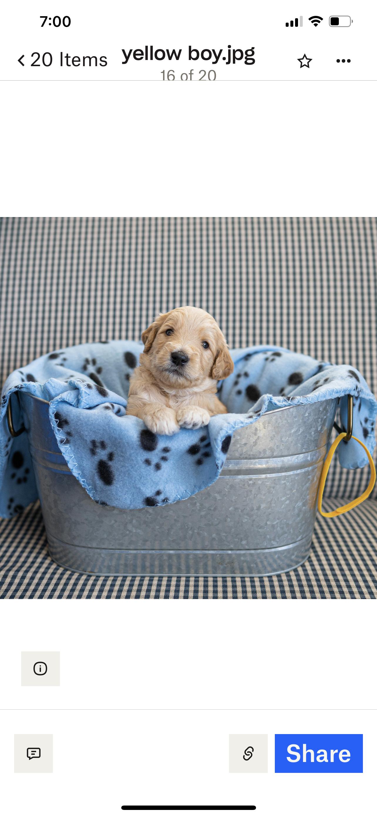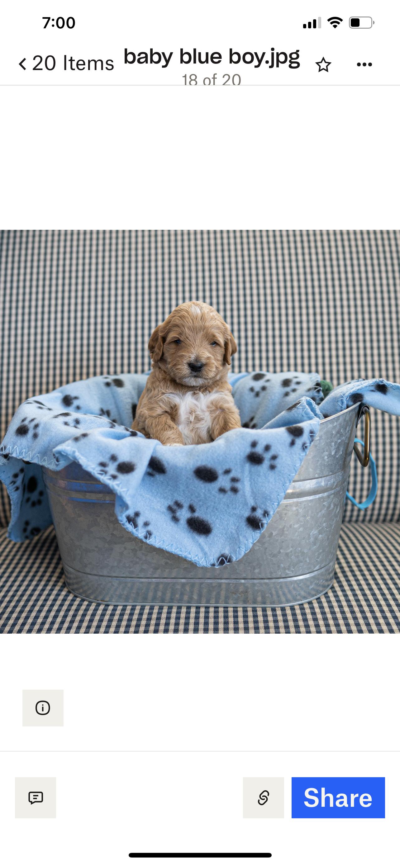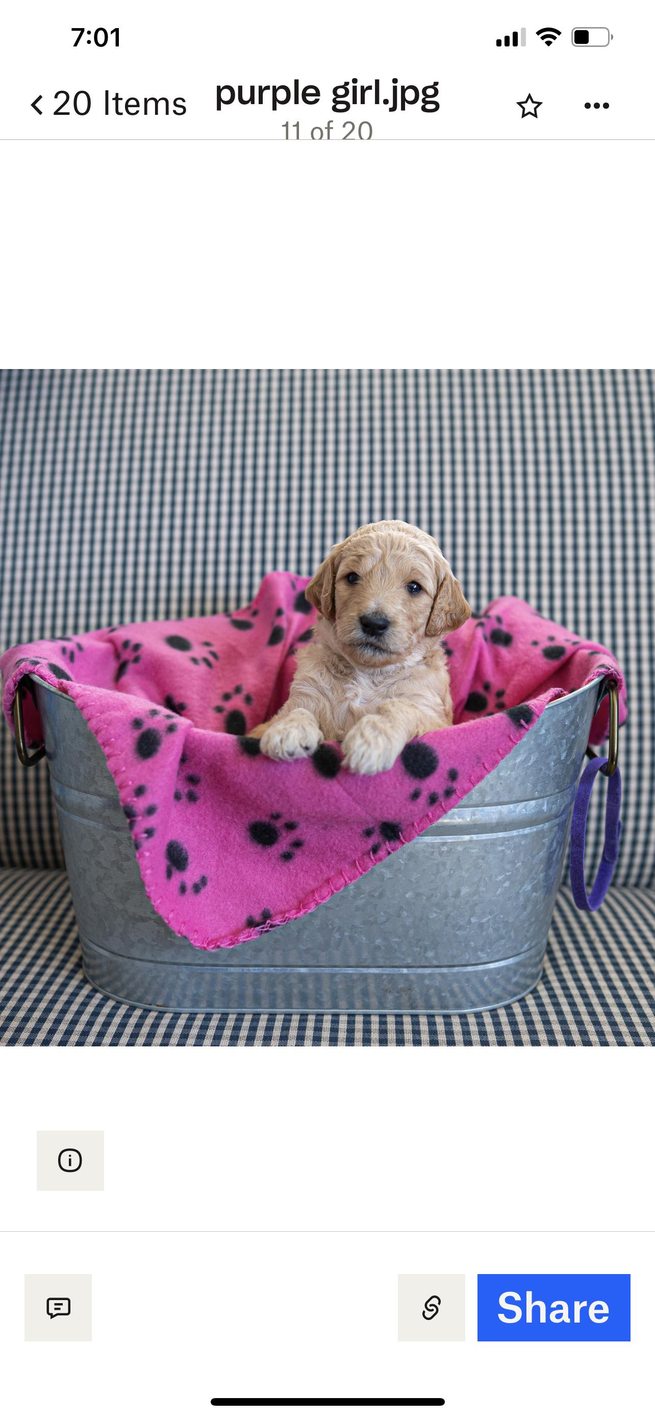 Our puppies include cream, apricot, and red. Colors will vary depending on the parent dogs.