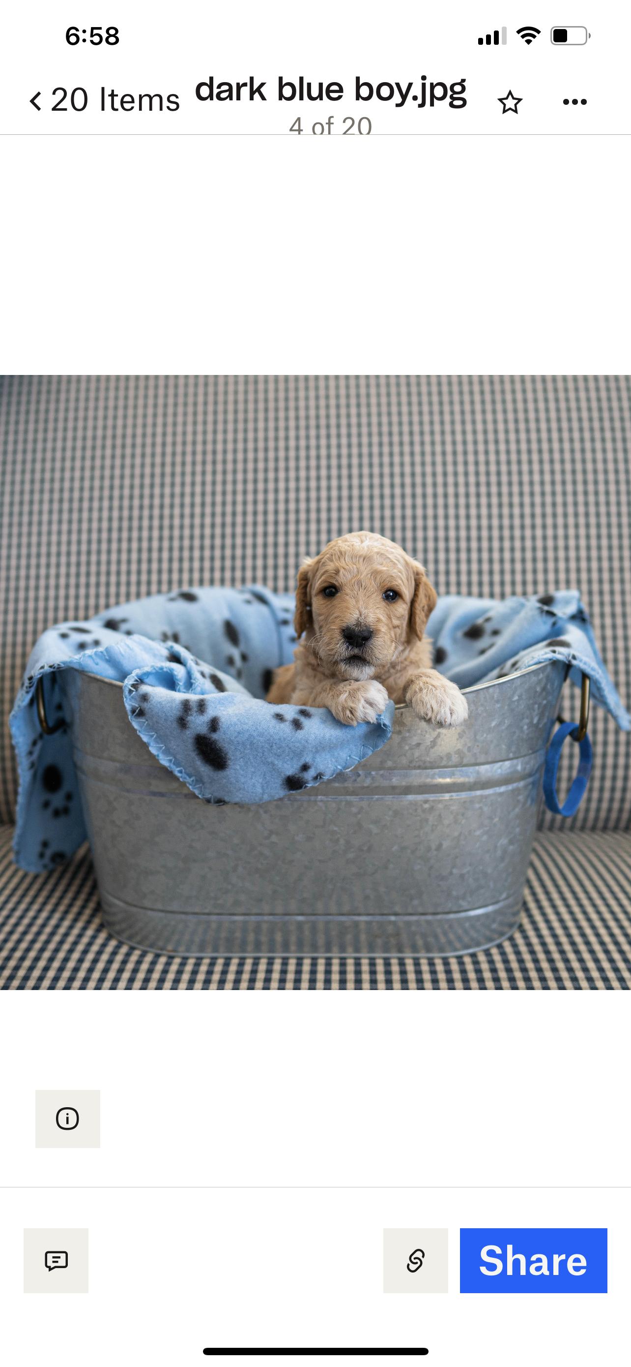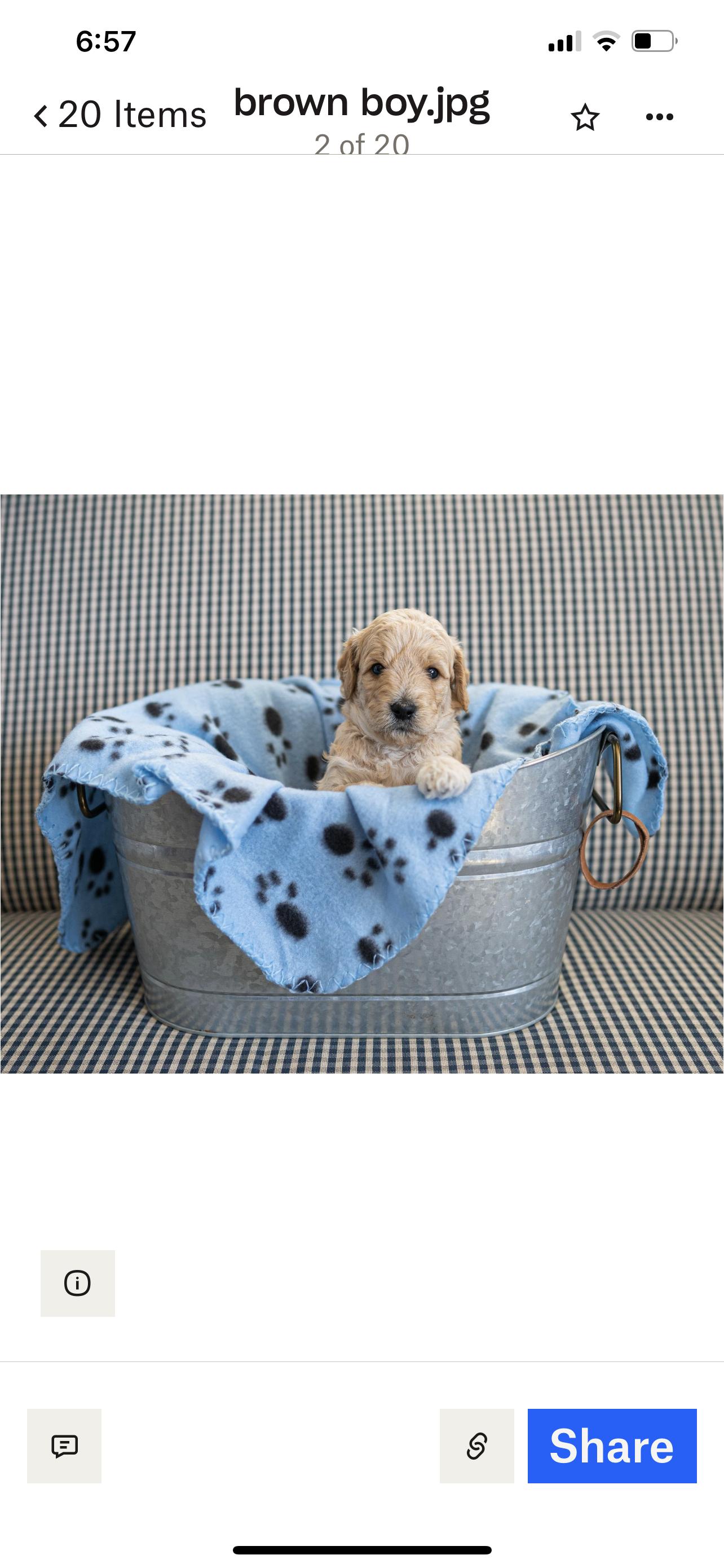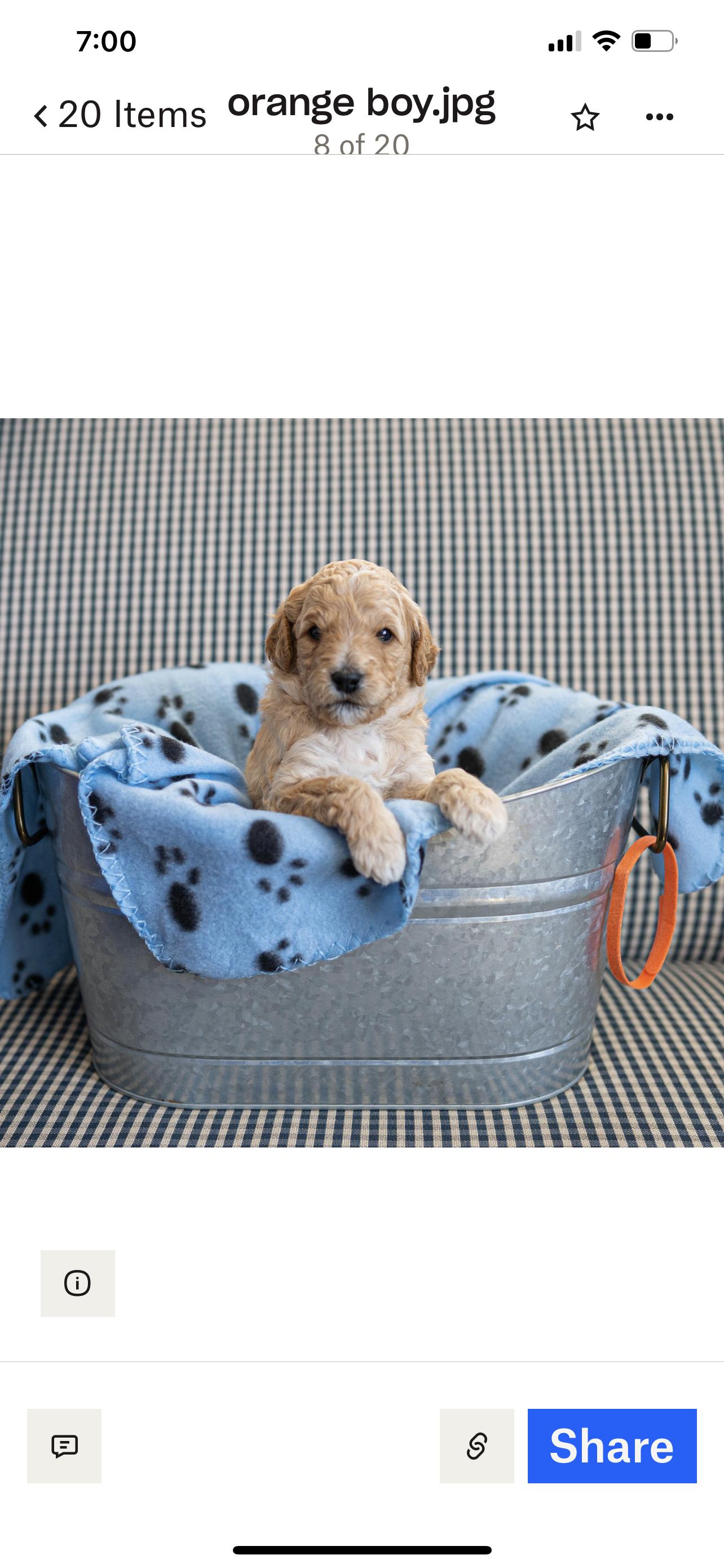 Our puppies include cream, apricot, and red. Colors will vary depending on the parent dogs.