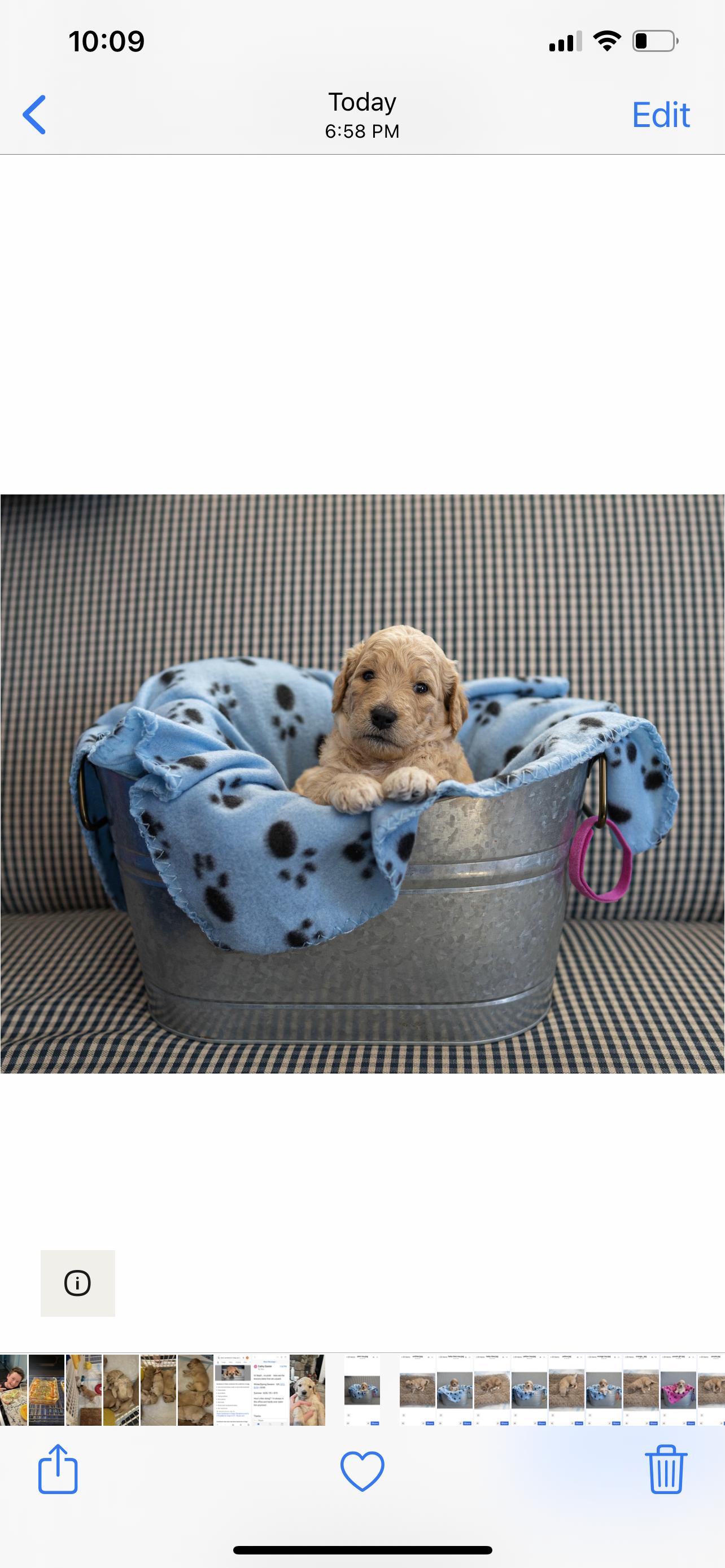 We wanted to add another doodle to our family to be a companion for our Ella, so, we decided to breed her once and keep a puppy. So, in order to produce an amazingly healthy pet we began with genetic testing and then onto health testing with the guidance of a reproductive veterinarian. Ella passed all tests with flying colors. We found an amazing stud with the same perfect health testing.