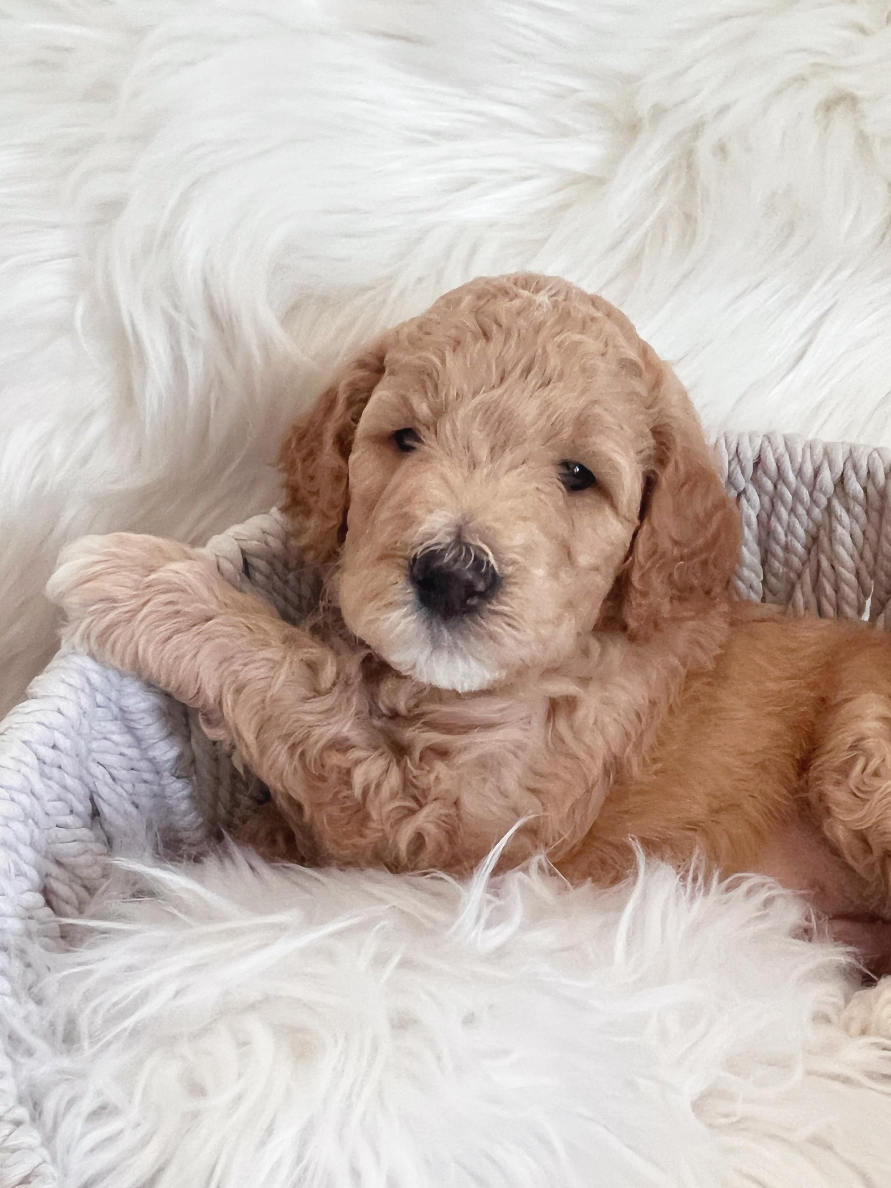 Ella is a female Goldendoodle. Carefully selected as a great representative of her breed, Debi decided to make her part of their program. Debi has passed Good Dog’s screening process, which involved a review of their breeding practices, environment, and the mental and physical health of their dogs.