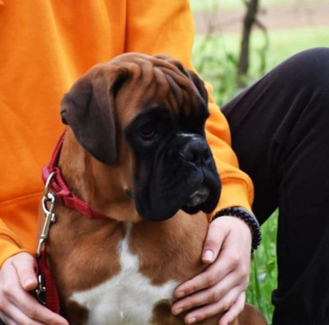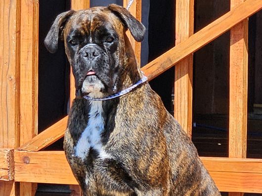 Chaldykri is a female Boxer. Carefully selected as a great representative of her breed, Susan decided to make her part of their program. Susan has passed Good Dog’s screening process, which involved a review of their breeding practices, environment, and the mental and physical health of their dogs.