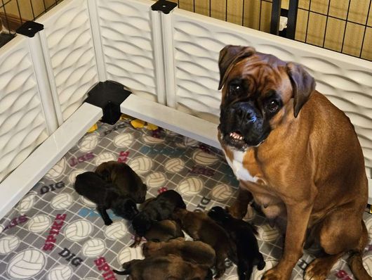 We attain the highest regard in health testing, temperament, and beauty. I have and will continue to strive to better the Boxer breed. With that said, I'm doing my best to assure I provide a healthy, loving, and beautiful pup to our clients. I put love and care into our Boxers and treat them as my human family. They are my fur family and I hold them to the highest regard.