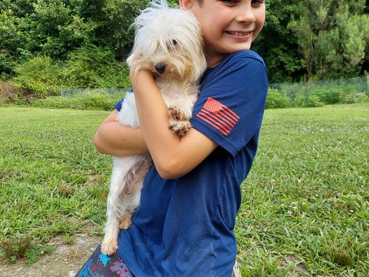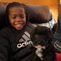 Mila aka Mimi is our sweet girl that absolutely adores my oldest son. She is a happy playful girl that loves belly rubs any chance she gets.